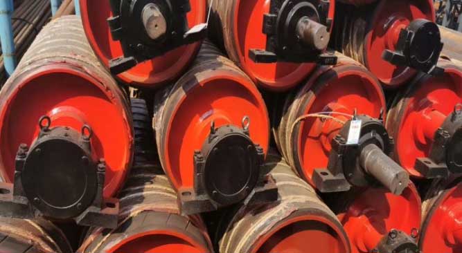 改向滾筒主要在皮帶運(yùn)動(dòng)的下方,如皮帶運(yùn)送方向?yàn)樽螅敲锤南驖L筒在皮帶機(jī)的右側(cè),主要結(jié)構(gòu)為軸承和鋼筒,傳動(dòng)滾筒是皮帶機(jī)的主動(dòng)輪,從兩者之間的關(guān)系來說就好比自行車兩個(gè)車輪,后輪就是傳動(dòng)滾筒,前輪是改向滾筒;改向滾筒和傳動(dòng)滾筒在結(jié)構(gòu)上是沒有區(qū)別的,都是由主軸滾筒軸承及軸承室組成傳動(dòng)滾筒分主傳動(dòng)和從動(dòng)兩種。