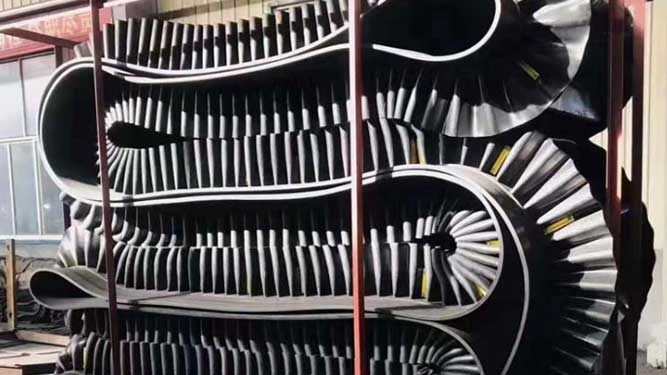 環形橡膠輸送帶種類多樣,有大傾角的、耐酸堿等各種材質,可提供產品圖片,設計合理。